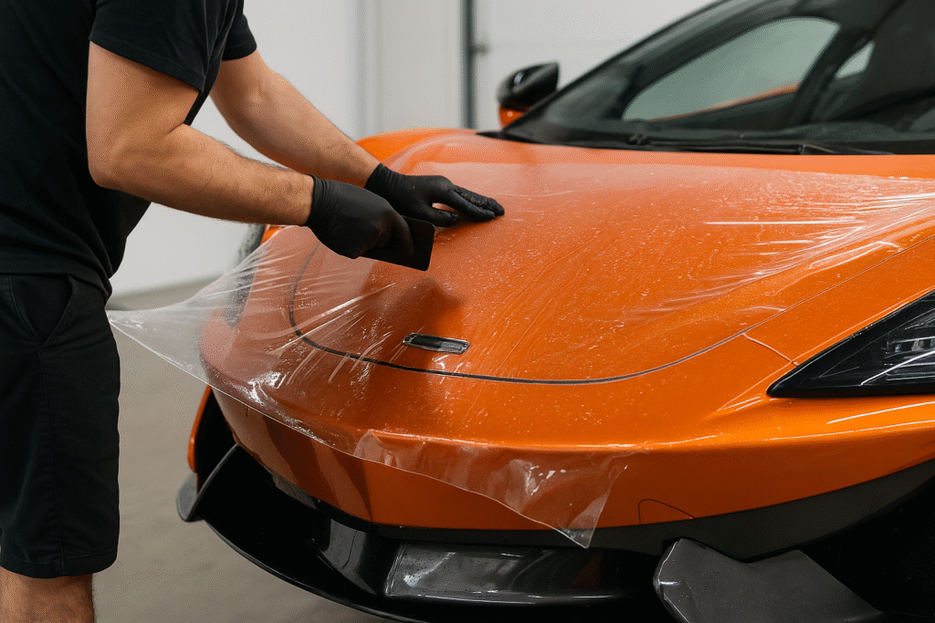 High-end PPF like XPEL Ultimate Plus creates a thick, self-healing barrier between your supercar’s paint and the road.